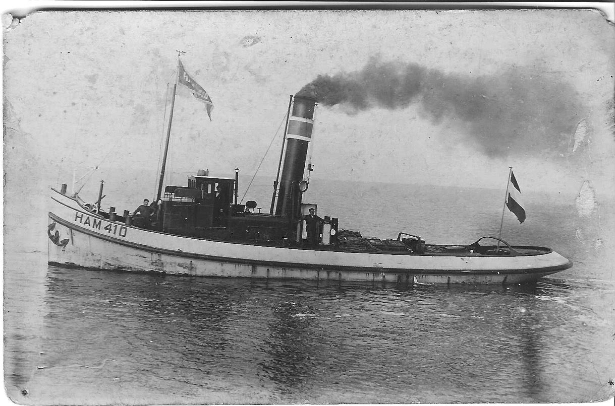 Oude archieffoto van de stoomsleper S.S. Cor-Adri, inmiddels omgedoopt tot de Maarten waarop we voor de podcast een dagje mee mochten varen.